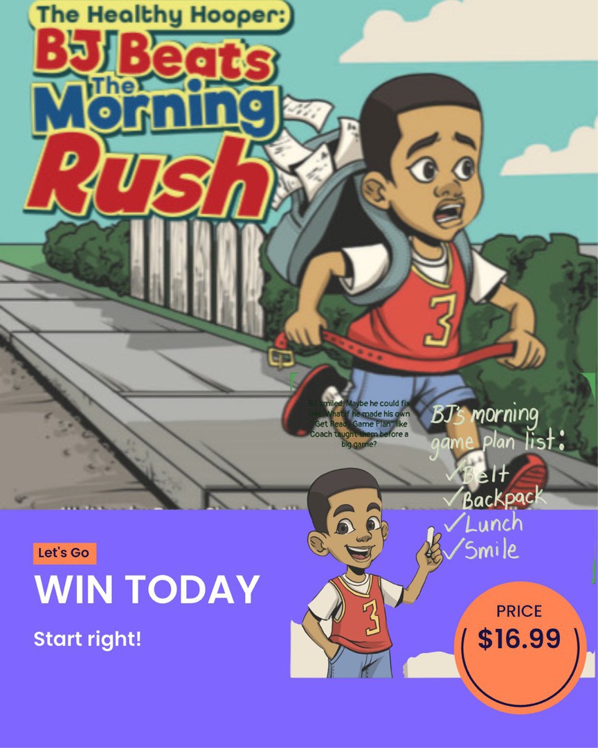 BJ is a young hooper who loves basketball, school, and his family—but every morning feels like chaos. Shoes misplaced. Belt missing. Pressure rising. With the bus pulling up and stress taking over, BJ realizes something has to change. Through self-reflection and simple habits, BJ learns that preparation is the real secret to winning the day.